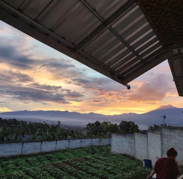 Depan: View langsung Gunung Gede Pangrango